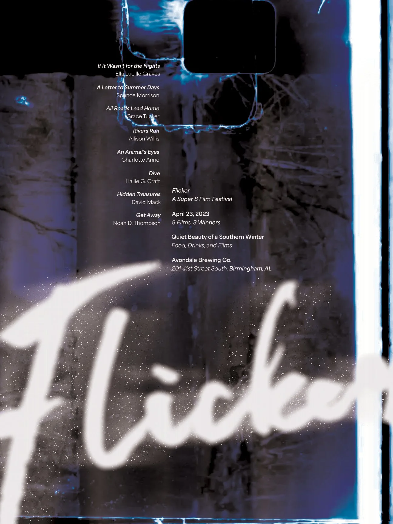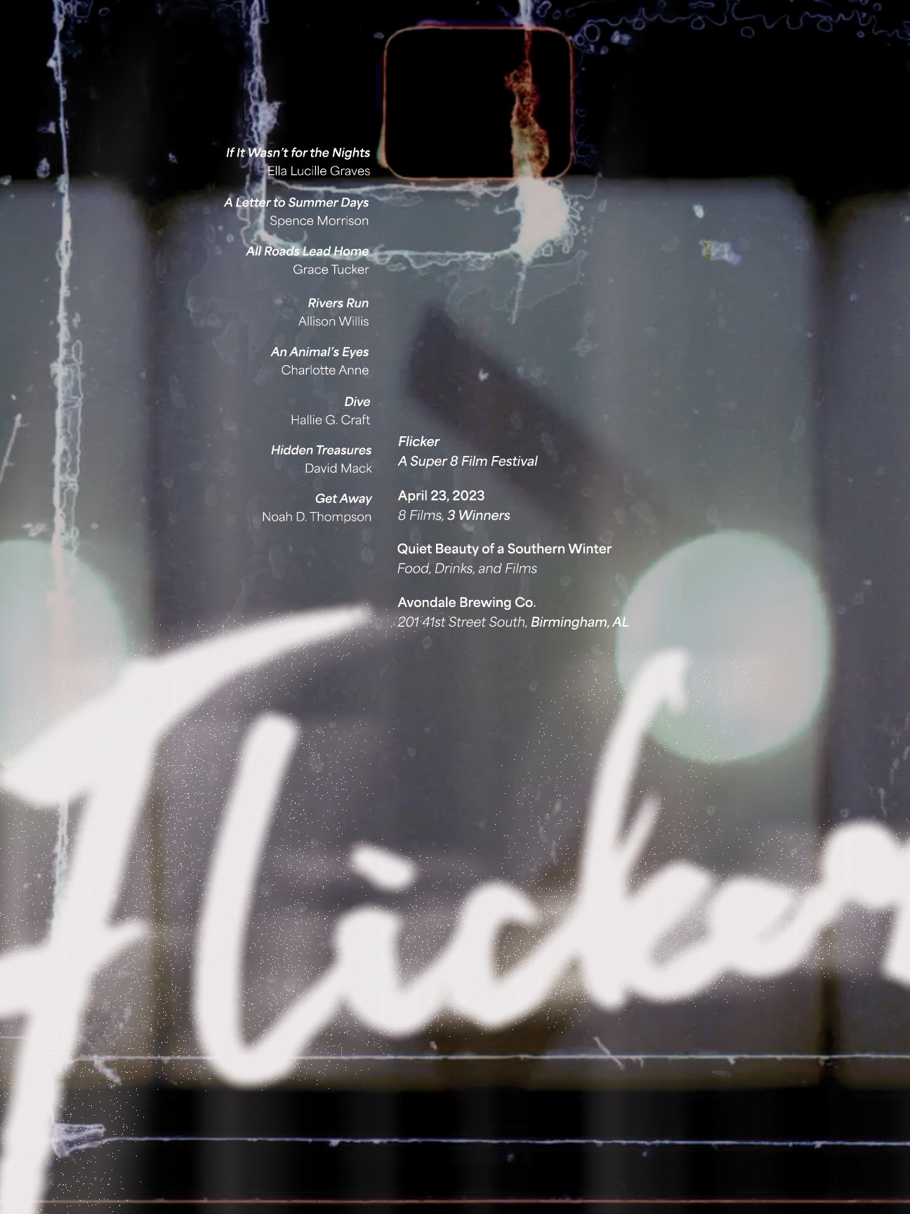 Exploring branding and identity, advertising, kinetic typography, videography, and interactive design, this exhibition is meant to celebrate Alabama creatives. This festival is unique in that it only allows entries shot on Super 8 film with content reflecting the creator’s unique personal experiences.